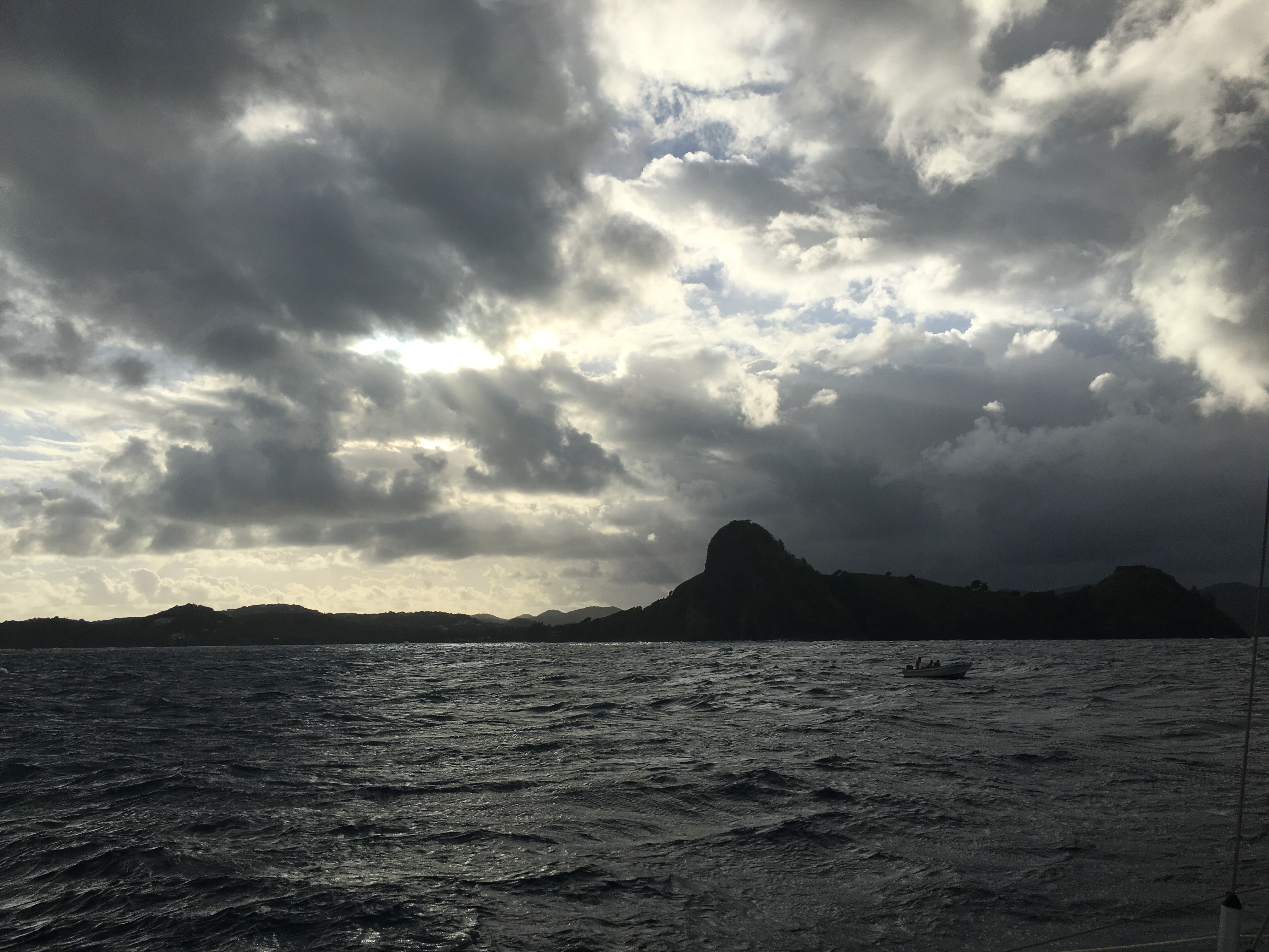 St Lucie se découpait délicatement, un peu perdue entre les nuages de grains qui se succédaient. La nuit avait été bien agitée, à slalomer entre des nuages de pluies immenses, souvent accompagnés de pointes de vent a plus de 30 noeuds