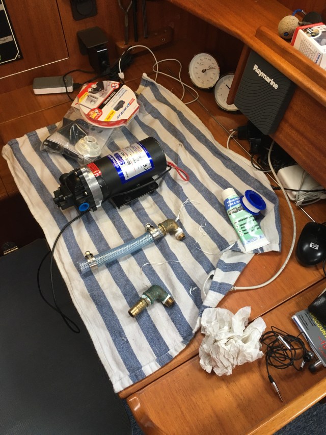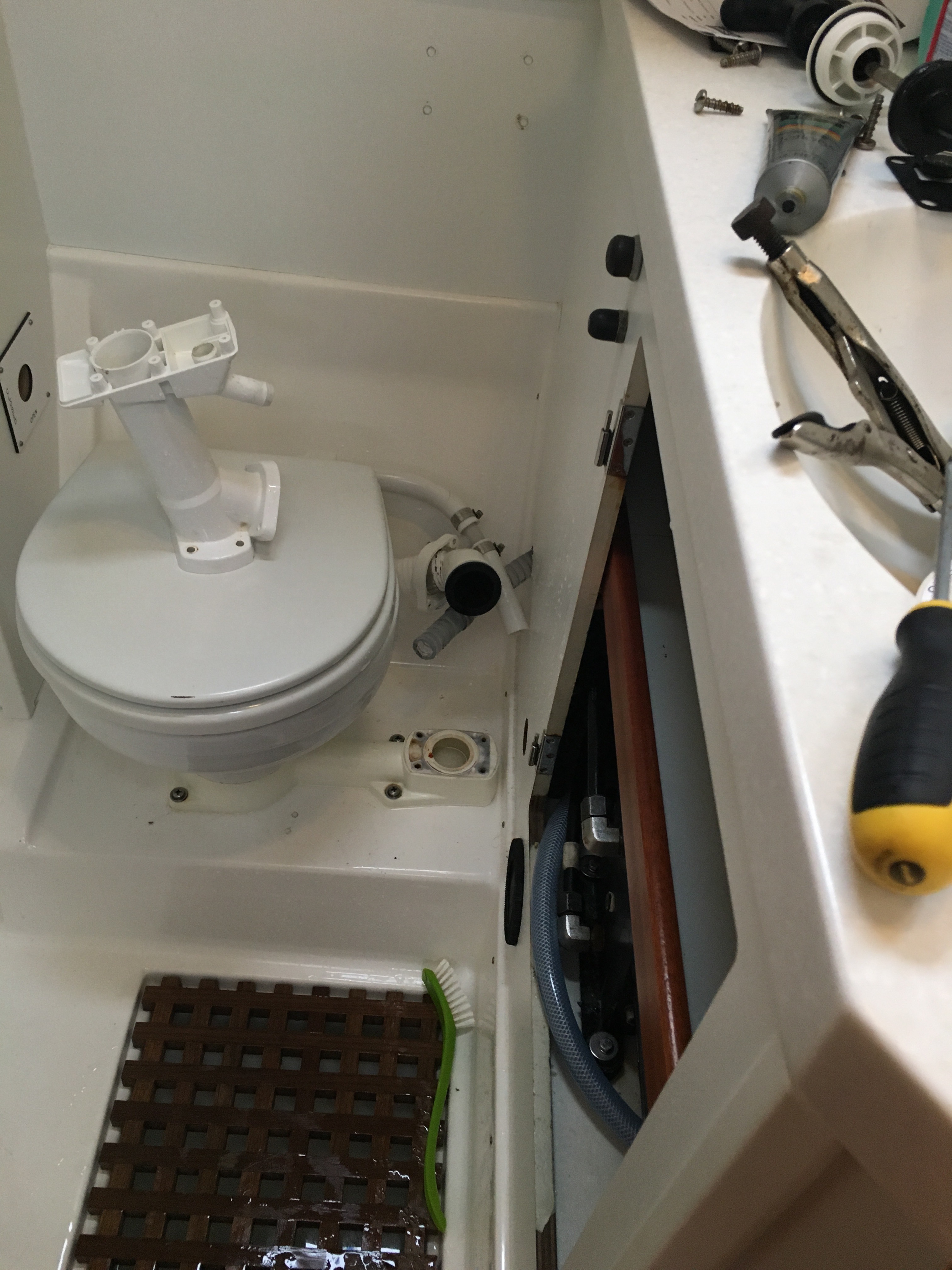 La pompe des chiottes est un des grands bonheur de tout skipper de voilier. Elle lache TOUJOURS au mauvais moment, n’est JAMAIS facile à réparer… Et offre chaque fois des HEURES de pur bonheur à tout skipper qui tente de s’en rendre maitre.