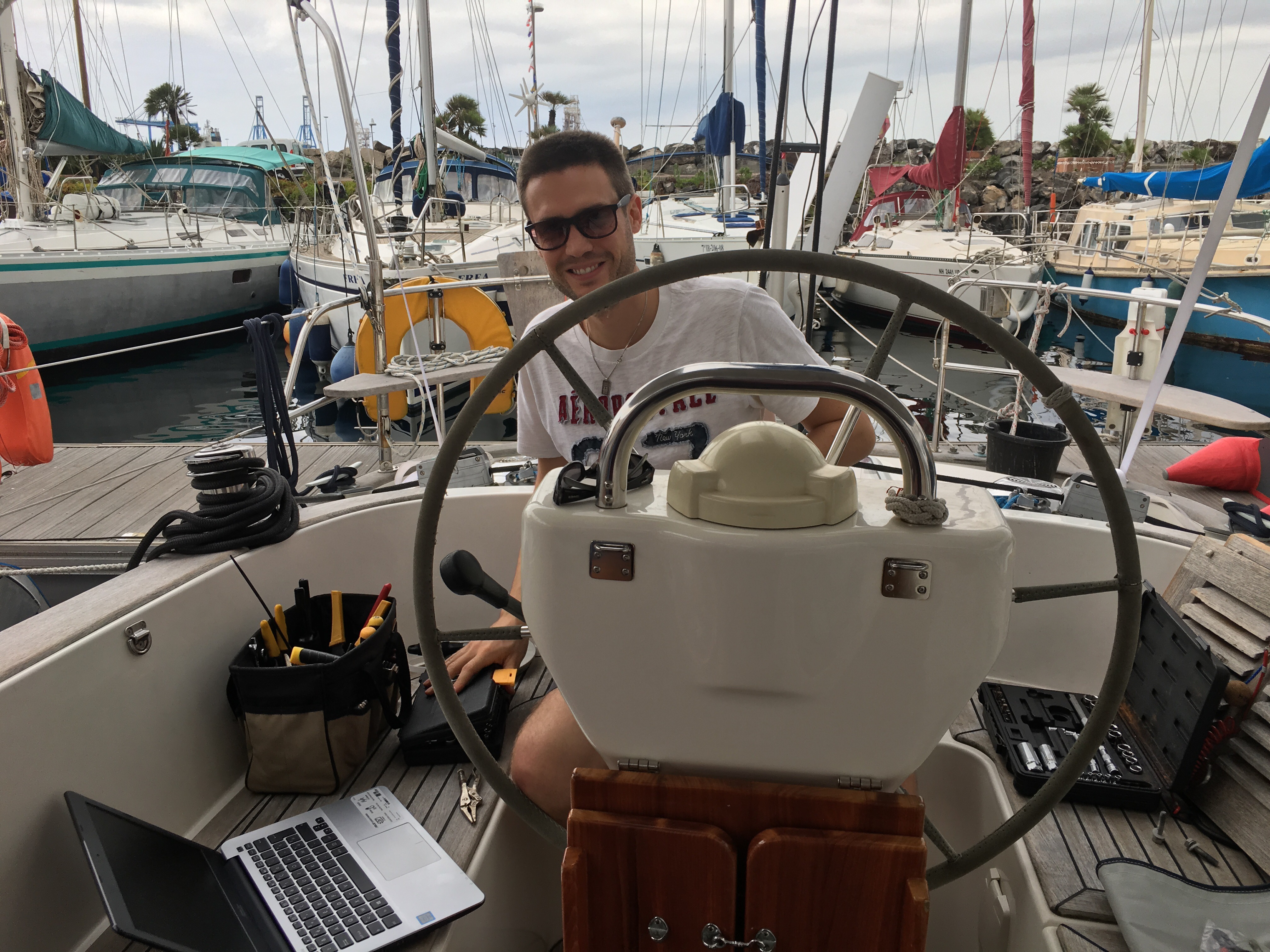 Greg, quant à lui, sera l’exact complément de David… Pour l’intérieur du bateau. Ce qui fait de lui le grand responsable du « poumon technique » d’Hina: moteur, batteries, générateur, gasoil, eau, dessalinisateur… En deux mots: tout ce qui fera vivre la belle, pendant nos 3000 milles à travers l’océan.