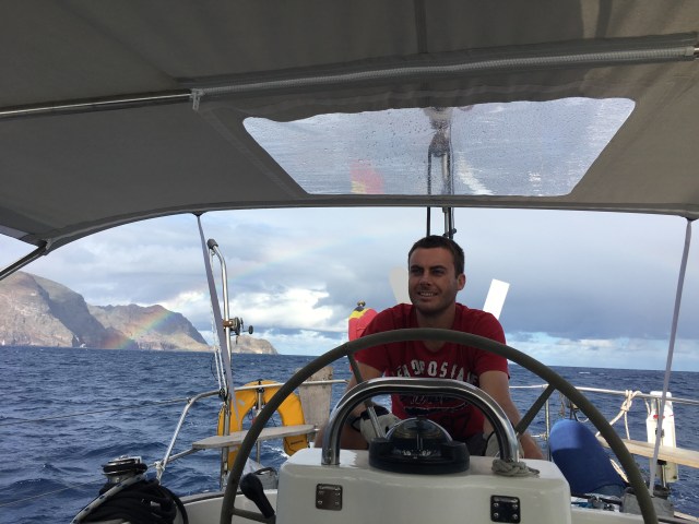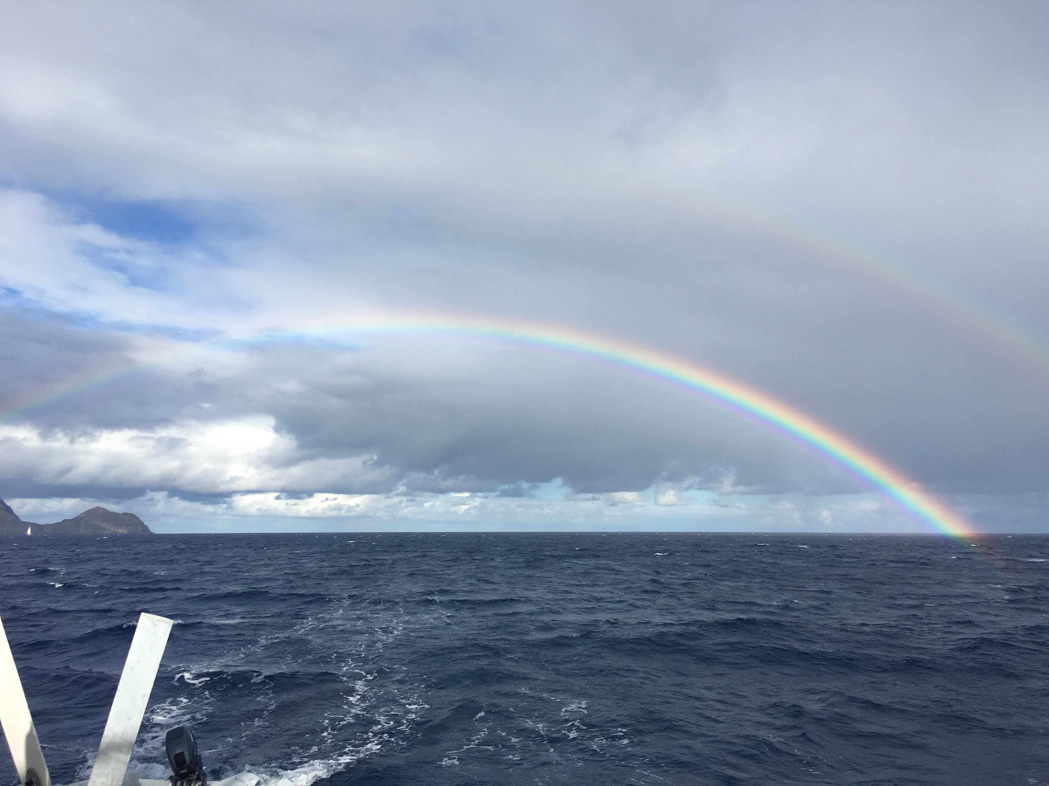 2h de nav vent arrière sous génois seul… le temps de quelques photos, et de quelques grains sous arc en ciel