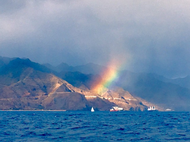 Nous avons pris la mer dimanche, presque en même temps que l’ARC+… mais avec un objectif nettement moins ambitieux que le Cap Vert. Notre objectif à nous: Ténériffe, et plus particulièrement un petit mouillage perdu tout à la point nord de l’île, ou nous espérons retrouver l’équipage de Thera.